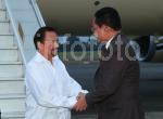KEBERANGKATAN tiba KDYMM diLapangan Terbang Halim Perdanakusuma dijunjung oleh TYT Bagas Hapsoro, Direkor Jeneral Staf Ahli Manajemen, Kementerian Luar Republik Indonesia.